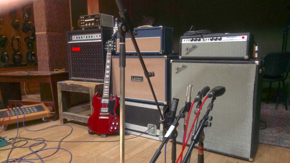 Le chitarre, una Epiphone SG Elite rigorosamente Made in Japan, per rimanere in tema Sol Levante, sono state amplificate con amplificatori valvolari Dominator della WEM (Watkins Eletric Music, UK, prima produzione 1972).