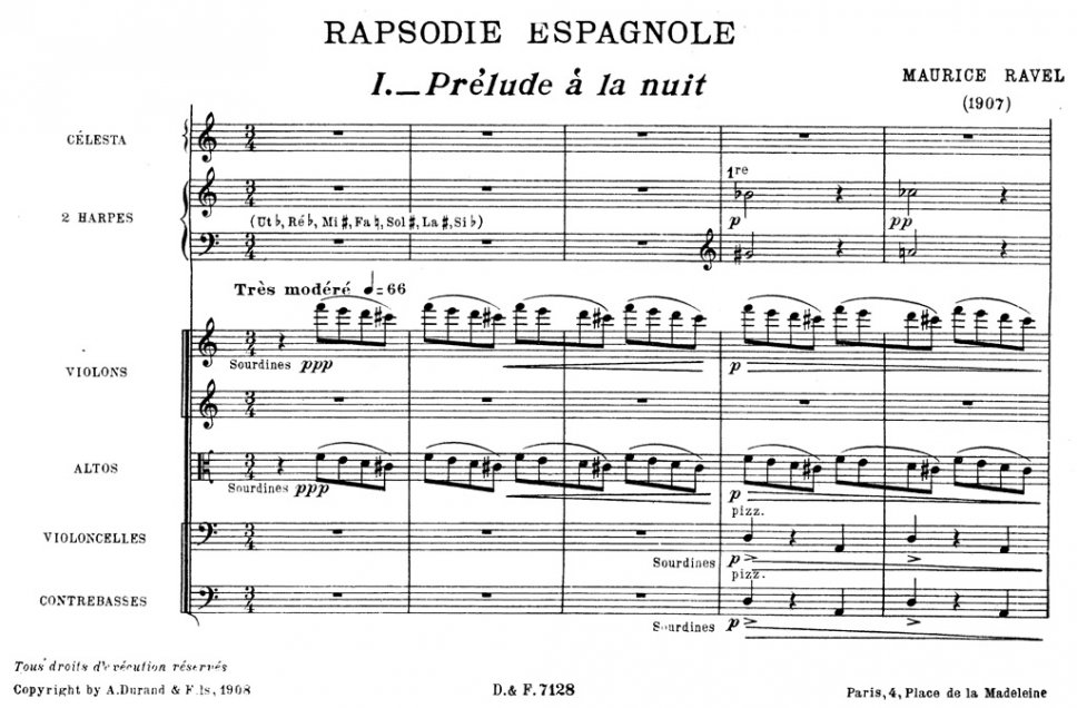 Il periodo più fecondo per Ravel fu quello tra i 1905 e il 1908 del quale è importante ricordare composizioni come “Pavane pour une infante defunte” (1905), “Rhapsodie espagnole” (1907) e “L’heure espagnole” con libretto di Franc-Nohain (1907). Nella lenta danza di “Pavane”, spesso accostata al Debussy più etereo, o nello spassoso intreccio de “L’heure espagnole”, tentativo del compositore di rinnovare la tradizione dell’opera buffa, si delinea quella personalissima concezione di Ravel totalmente estranea al clima simbolista o impressionista.
