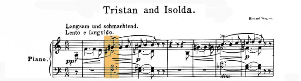 Potrà sembrare strano ma per trovare un inizio al Novecento musicale è necessario portare indietro il calendario alla sera del 10 giugno 1865, nel bel mezzo dell’Ottocento, pochi anni dopo la nascita del Regno d’Italia e proprio mentre Bismarck si faceva largo nella politica germanica ponendo le basi per uno dei fenomeni socio-politici più importanti della storia moderna. In quella particolare notte, davanti agli spettatori di Monaco di Baviera, fu lanciato il germe del grande cambiamento, per mano di uno fra i compositori dell’800 maggiormente proiettati verso il futuro. Tristan und Isolde è l’opera in cui Richard Wagner utilizzerà quello che è divenuto il punto di partenza del nuovo secolo musicale, la porta sulla musica moderna, il Tristan akkord, ovvero l’accordo di Tristano.Bastano pochi secondi di musica a Wagner per inserire nel Vorspiel/Preludedell’Atto I del Tristan il famoso accordo, ed è giusto quindi spendere almeno due parole per spiegarne tanta importanza. In realtà è l’intera opera a dover essere considerata come fondamentale nell’avvento della musica moderna, certamente però il Tristan akkord rappresenta l’elemento più emblematico. L’accordo è composto dalle note FA, SI, RE# e SOL#, due intervalli di quarta, niente di alieno nei giorni nostri, per tutti noi che abbiamo l’orecchio spesso abituato all’armonia jazz, eppure allora, a metà Ottocento, fu scandalosamente geniale. Soprattutto fu scandalosamente determinante.
