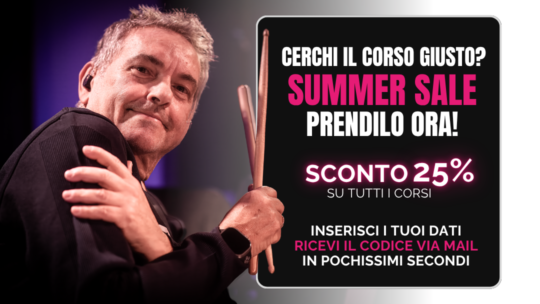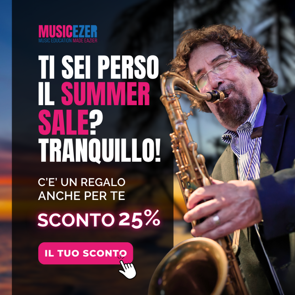 Se suoni uno strumento e vuoi davvero migliorare, l’estate è il momento ideale per investire sulla tua formazione musicale. Ed ecco che ti offriamo l’occasione giusta: i Summer Sale di Musicezer sono appena iniziati e ti regalano il 25% di sconto su tutti i corsi!