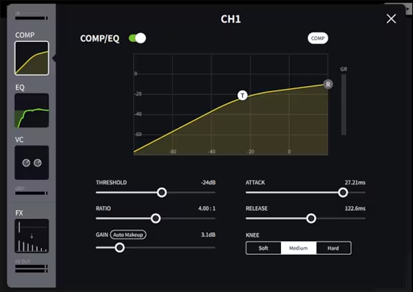 Una delle caratteristiche più apprezzate dell’AG08 Controller è la capacità di gestire una serie di effetti DSP direttamente dal software. Questi includono il compressore, l’equalizzatore, il riverbero e altre opzioni per la modellazione del suono, che consentono di adattare la resa audio a diverse situazioni, come una trasmissione dal vivo o una registrazione in studio.