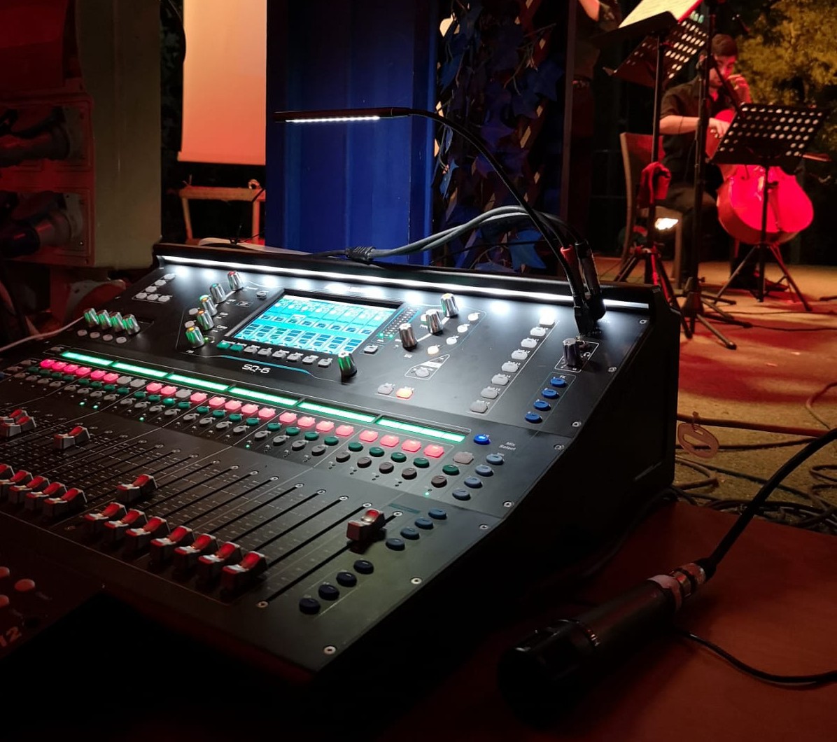 Per quanto riguarda il parco microfoni la tipologia degli spettacoli (musicali, di prosa e cabaret) ha suggerito l’uso di radiomicrofoni dotati di headset, oltre ai tradizionali “gelati”. Sono quindi stati scelti i sistemi Sennheiser XSW D e gli affidabilissimi SK2000 dotati di headset HSP 4 3 e doppio ricevitore EM 2050.