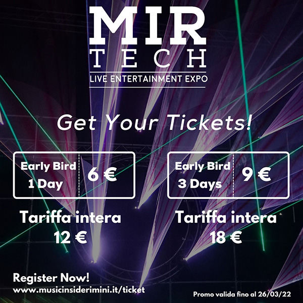 Dopo due anni di stop forzato, siamo lieti di annunciare il ritorno di una delle fiere più importanti d’Europa per la presentazione delle migliori novità tecnologiche per l’entertainment ad ogni livello, dai piccoli e medi spazi, ai grandi palchi e tour, fino alle manifestazioni di carattere internazionale: dal 27 al 29 marzo siete invitati al MIR TECH 2022.