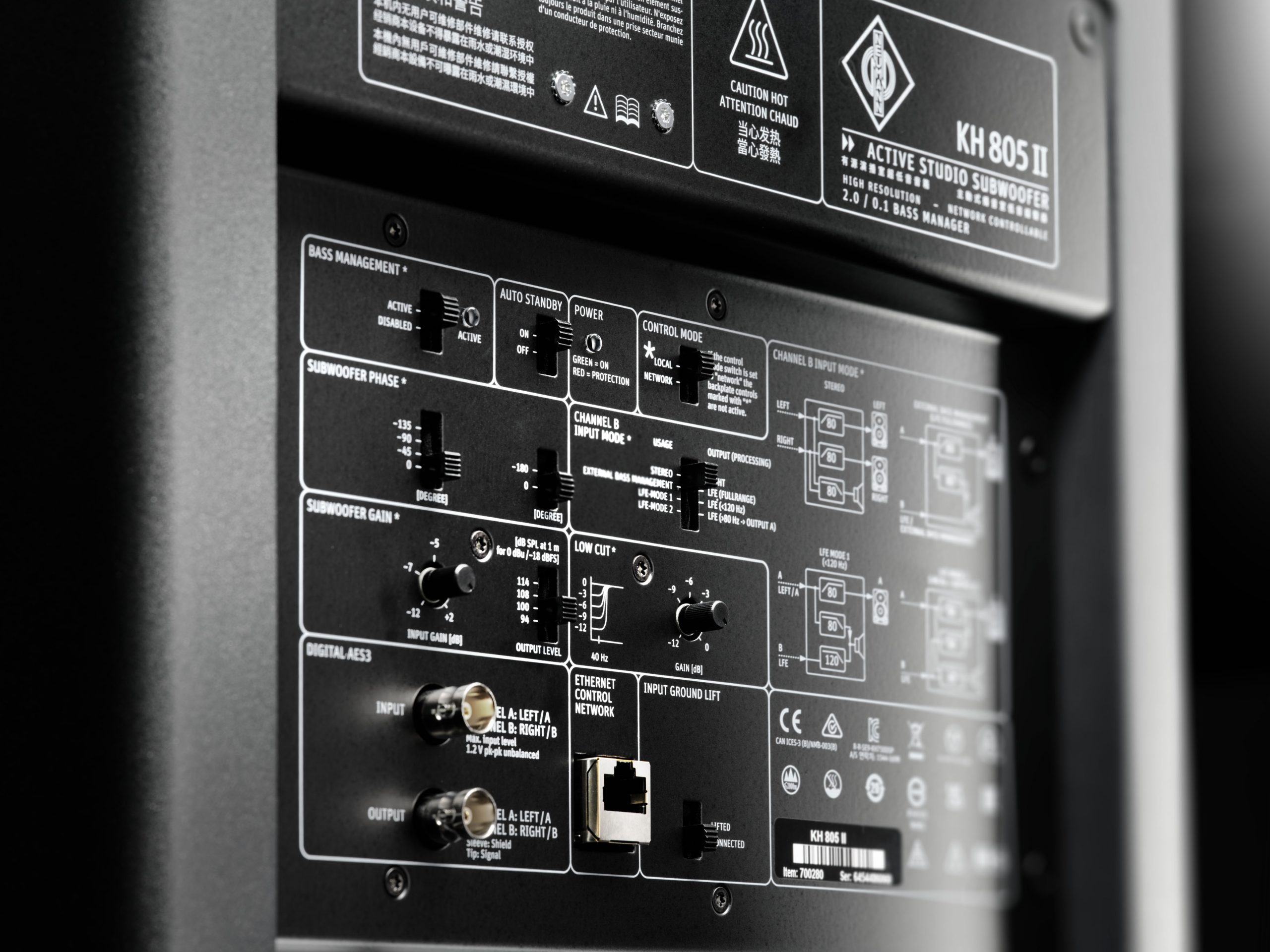 Il KH 810 II introduce la gestione del basso multicanale per sistemi fino a 7.1.4, integrandosi perfettamente nei flussi di lavoro immersivi. Condivide la stessa architettura acustica del KH 805 II e può gestire fino a undici monitor da studio.