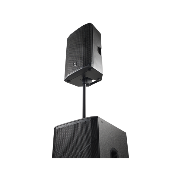 La sua tromba ruotabile con una dispersione di 90º x 60º permette di utilizzare la cassa in orizzontale in un’installazione fissa, come monitor da palco o anche come front fill.