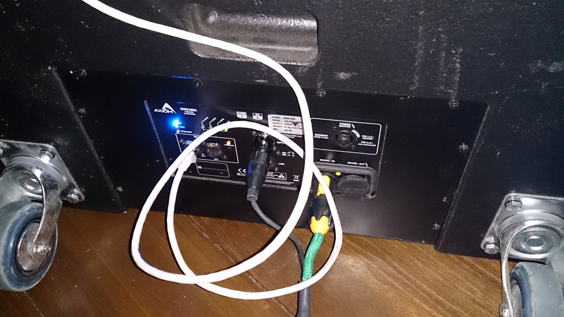 Infine, un cablaggio di controllo remoto, sempre tramite cavo CAT5e, è installato tra i due sub Axiom SW2100A e il mini-PC su cui gira il software Pronet della Proel, necessario alla gestione del DSP a bordo del sistema Axiom AX12C.