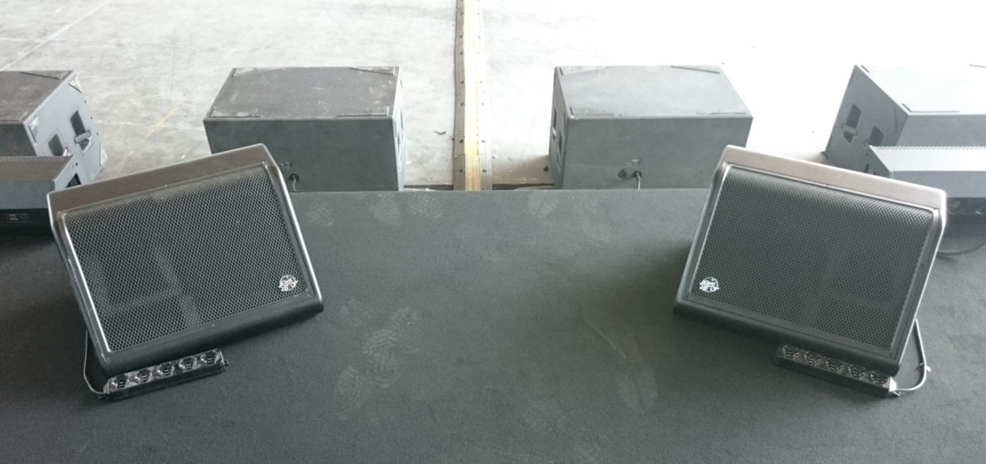 Come detto in precedenza, tutti i monitor passivi sono stati utilizzati in bi-amplificazione e quindi cablati con cavi a quattro poli da 4mmq intestati con EP4, unica eccezione per gli 1AM che erano in versione Speakon. Vista la varietà di diffusori che avevo a disposizione sul palco, armato di fonometro e della pazienza di Ivan Omiciuolo e Matteo Barbaro, ho cercato equilibrare i livelli di ascolto lavorando sulla sensibilità di ingresso dei finali, in modo che sulla console avrei ottenuto una gestione omogenea delle mandate ai vari mix.