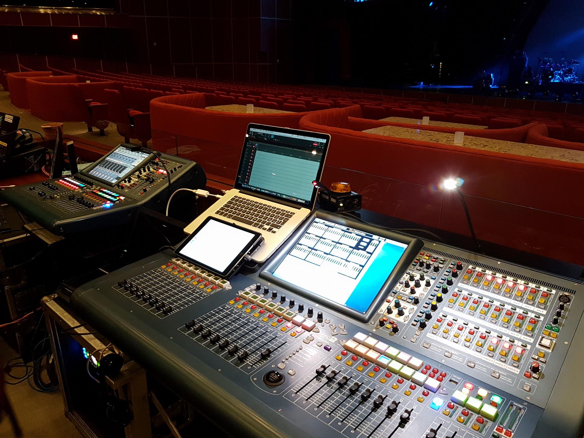 I mixer vengono noleggiati negli Stati Uniti, per quanto ovviamente riguarda questo specifico tour USA. Abbiamo un CL5 Yamaha come mixer di palco, su cui opera il fonico Mark Hadman. Io invece utilizzo un Midas Pro2. C’è uno splitter attivo che divide il segnale di due stage box in modo tale che noi due possiamo essere indipendenti sulla gestione dei guadagni.