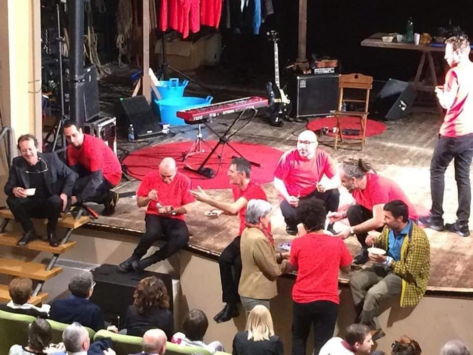 Bene, questo è tutto, spero abbiate trovato interessante questo viaggio a puntate, vi saluto con una fotografia che rappresenta a pieno la convivialità sincera che si respira in questa compagnia: la cena finale, in cui veniamo coinvolti tutti, pubblico, attori, musicisti e tecnici!
