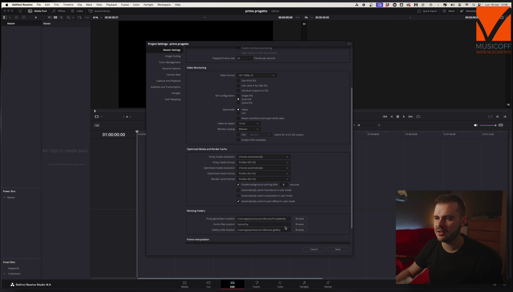 La scelta di DaVinci Resolve da parte del team di Musicoff non è casuale. La sinergia tra hardware e software è fondamentale nel nostro workflow, specialmente considerando l’uso dell’Atem Mini Extreme ISO in studio, altro performante tool di casa Blackmagic desgin.