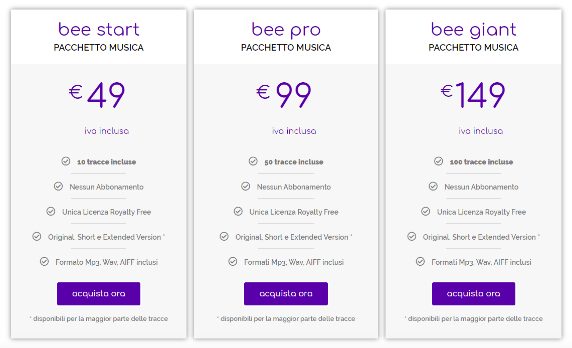 - preview gratuita: prima dell’acquisto possiamo scaricare gratuitamente la versione preview di ogni brano (conterrà un watermark sonoro anti-pirateria)