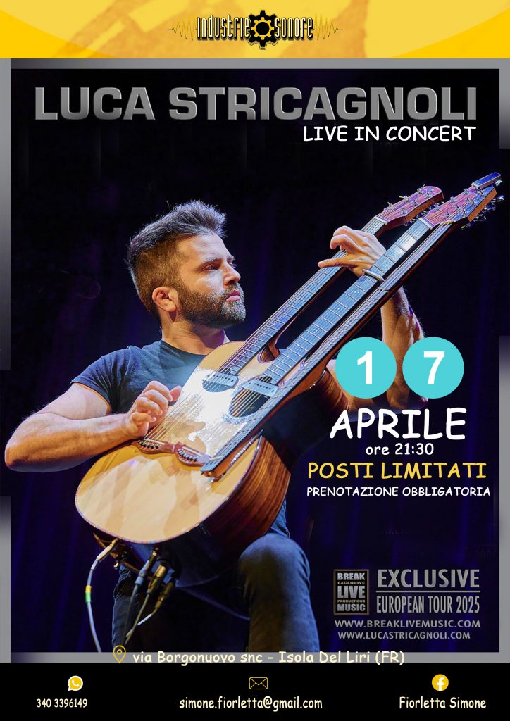 Un nuovo appuntamento musicale di alto profilo si prepara ad accendere la scena di Isola del Liri: il prossimo 17 aprile alle 21:30, il palco delle Industrie Sonore ospiterà Luca Stricagnoli, tra i nomi più riconoscibili della chitarra acustica moderna a livello internazionale.