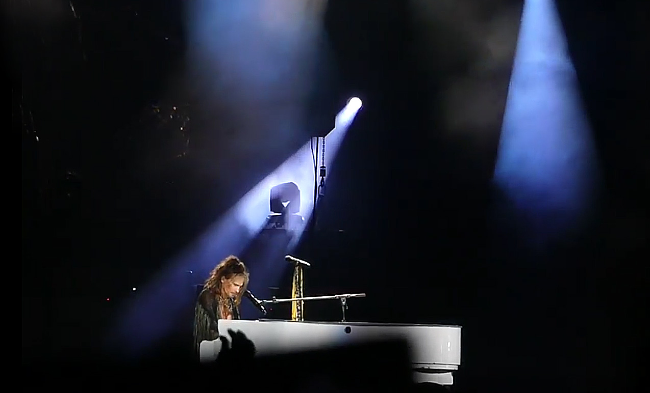 Tyler torna poi per i bis e a quel punto sembra aver ripreso fiato quando, sedutosi al piano, intona una intensa “Dream On”.