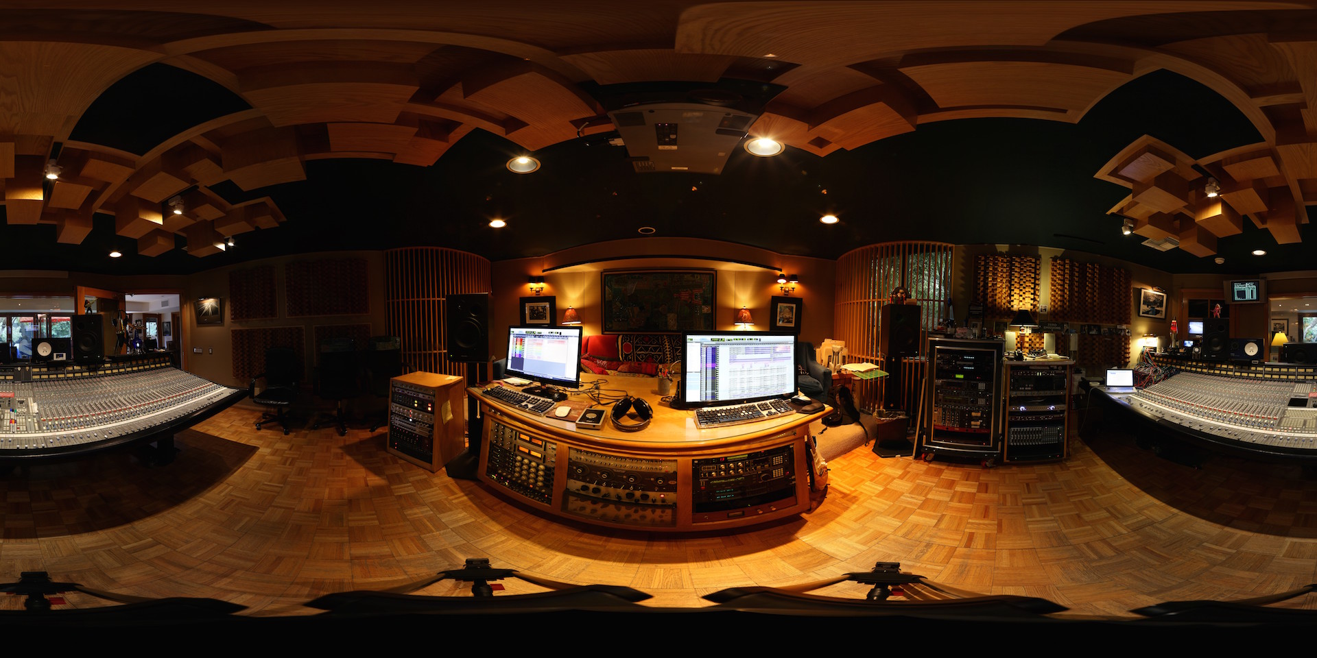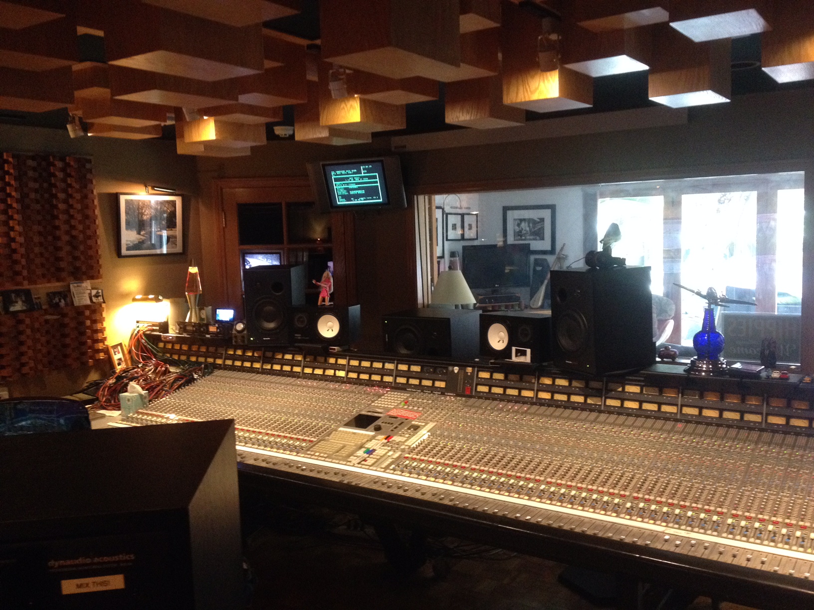 Lo studio di Clearmountain è nel quartiere prestigioso di Pacific Palisades a Los Angeles, una Beverly Hills meno pomposa. Una bella piscina, una bella console SSL, un gatto, un cane e un po’ di outboard. Dopo aver visto le stanze di Micheal Brauer e Chris L. Aldge sembrerebbe pochino in effetti, ma ad ognuno i suoi strumenti. Tre 1178 Urei, 4 distressor, due Pultec, due compressori dinamici della BSS, un Neve 33609 e un Avalon, 2 LA3a, tutto sommato pochi effetti, e altri pezzi sparsi. In più la cantina è stata adattata a Echo Chamber, con un suono breve e brillante, diciamo Motown style.