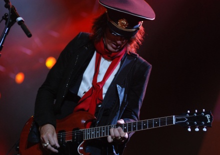 In questa foto invece lo vediamo suonare live con una Gibson SG Special.