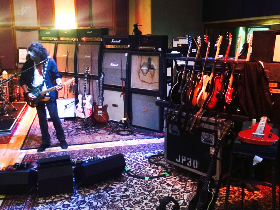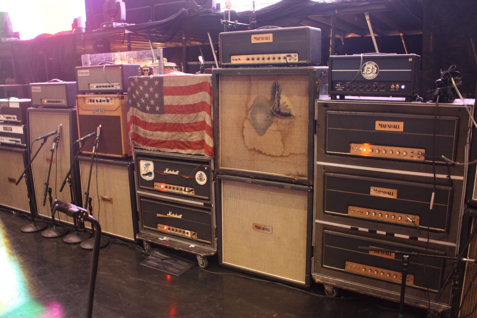 Passando al reparto amplificazione, anche qui troviamo tantissime tipologie di ampli, generalmente Marshall, essendo amante del classico suono Plexi; tra i più usati ci sono le Plexi ’69 (originali), dei JTM 45, delle testate Marshall Major Amp Head con KT88 e JCM 800.