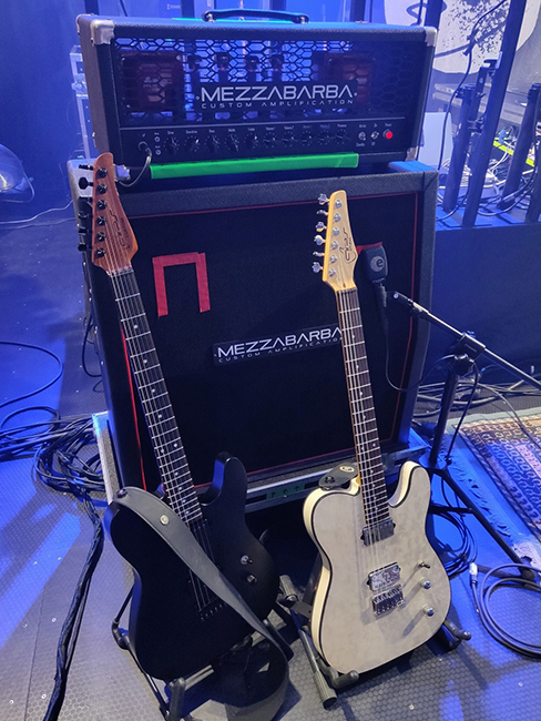 Merito? Si, ovviamente dell’ottima fattezza degli strumenti realizzati da Alessandro Pizzi (e delle meccaniche Hipshot) ma anche, e tanto (in passato con altre custodie non mi era sempre capitato), grazie alle custodie MONO con cui Backline ha deciso di supportarmi per il tour. Sono davvero soddisfatto di questa scelta, sono comodissime, pratiche, resistenti e veramente ti fanno dormire sonni tranquilli.