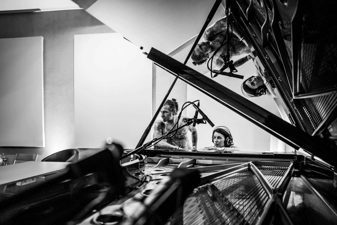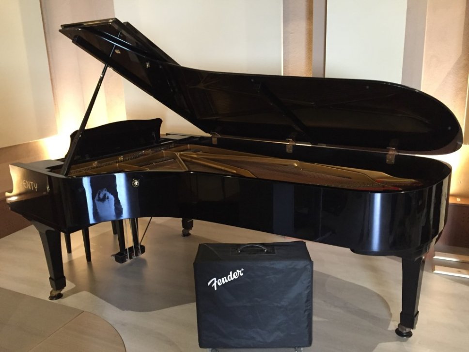 Per me, non esiste uno studio senza pianoforte e, con l’aiuto del pianista armena Irma Toudjian, ho scelto un bellissimo Yamaha CF III S gran coda da 2,75m. Il piano vive da noi ma è di proprietà di Walter Mostallino che fornisce pianoforti in tutta la Sardegna. Michele, bravissimo chitarrista, cantante e musicista di tutto tondo, aveva di suo tanti strumenti – chitarre, bassi, batteria, percussioni varie, tastiere – ed ha messo tutto a disposizione dello studio.