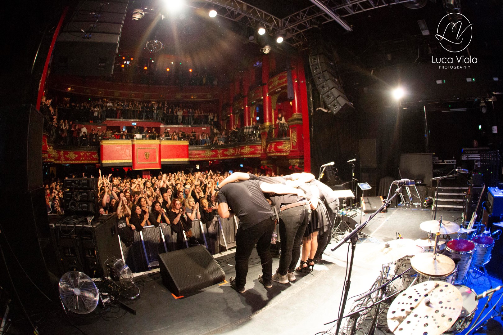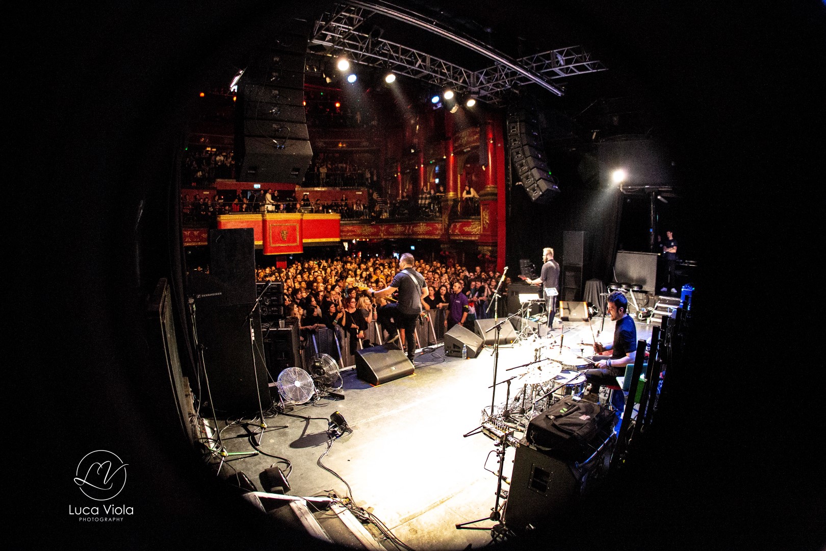 Tra la fine del check ed il live oggi passano solo due ore. Le spendiamo chiacchierando, rilassandoci e, almeno io, iniziando mentalmente a non cedere alla tentazione di rilassarsi troppo. È una data troppo importante. Ci cambiamo e conosciamo Luca Viola, ennesimo italiano! Fotografo trapiantato a Londra, che è venuto a fotografare l’evento e ci ha regalato degli scatti bellissimi anche nel backstage.