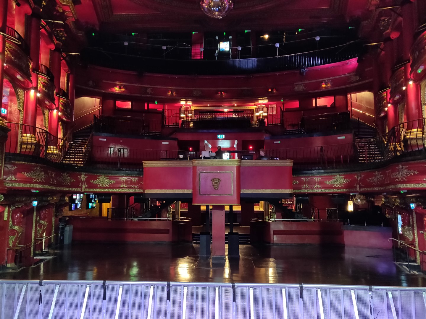 La venue manager ci introduce, all’ultimo piano del labirintico Koko, al production manager, che ci saluta, si dimostra felice di vederci e simpaticamente ci dice “You’re the main support for The Rasmus, so you’re gonna stay next to me” e ci apre la porta di un camerino tutto sommato niente male. Birrette e acqua ci accolgono, ma noi, dopo aver salutato, scendiamo giù a goderci lo spettacolo della sala. Bellissima. Un ex-teatro dove oggi si svolgono concerti, serate disco e molti eventi. Un posto magico.