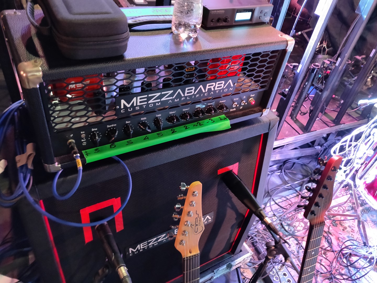 Il nostro soundcheck va benissimo, regolare, senza alti né bassi, lo staff è preparato, alla mano e competente. In cuffia mi fanno un ascolto abbastanza buono, anche se chiederò un po’ di modifiche al kick e ai piatti per renderli un pò più gestibili all’ascolto: la cassa era troppo “boomy”, i piatti troppo “harsh”, soprattutto questi ultimi mi avrebbero stancato molto se non li avessi fatti chiudere un pò.