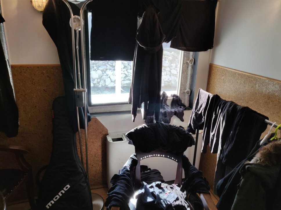 Ci guidano nel backstage, passando per il palco, è una barca ed è tutto ovviamente in stile. Nulla è stato “ritoccato” per dare, ad esempio al backstage, un tocco di “normalità”. C’è una stanza enorme condivisa da tutti (The Rasmus compresi) dove c’è un motore di una nave, il nostro bar personale, e tutto comunque è “navale”.