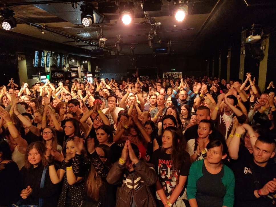 Saliamo sul palco, il locale è completamente sold out, il pubblico è in fiamme, davvero tutti presissimi. Oggi non ci sono nemmeno le transenne a separare il palco dal pubblico, è tutto più “a contatto”.