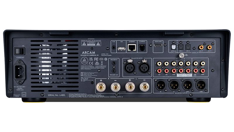 Il SA45 offre una dotazione di connessioni completa – ingressi analogici e digitali, HDMI eARC, uscite per subwoofer, phono MM/MC – pensata per integrarsi facilmente in sistemi esistenti o diventare il cuore di un nuovo impianto.