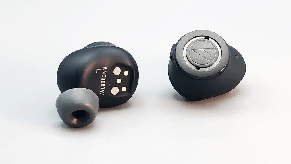 Le dimensioni di un auricolare ATH-ANC300TW sono maggiori di quelle di un earpod ma sempre abbastanza ridotte da alloggiare bene nell’orecchio (almeno il mio…) con una scelta di gommini talmente ampia da garantire l’amicizia con qualsiasi condotto uditivo.