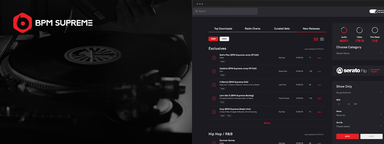 Abbonarsi a un Record Pool come BPM Supreme vuol dire avere un accesso prioritario alle uscite discografiche più recenti, nonché migliaia di tracce a disposizione di ogni passato decennio (’70/’80/’90) oltre alle recenti release.