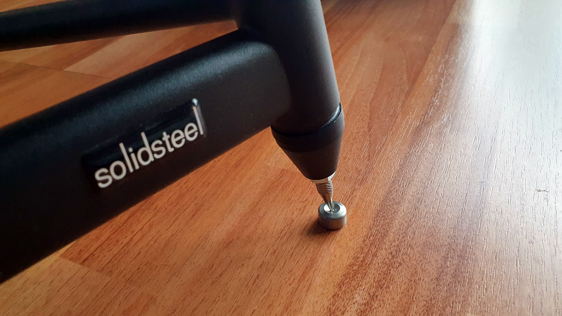 Chiaramente, se preferite prevenire eventuali rigature o addirittura fori (nel legno) sul vostro amato pavimento di casa, sono disponibili (opzionali) delle sottopunte dello stesso metallo, piene e solide, ben superiori a quanto io avessi già in casa e con un design assai discreto (alcune sottopunte a volte sanno davvero guastare l’impatto visivo).