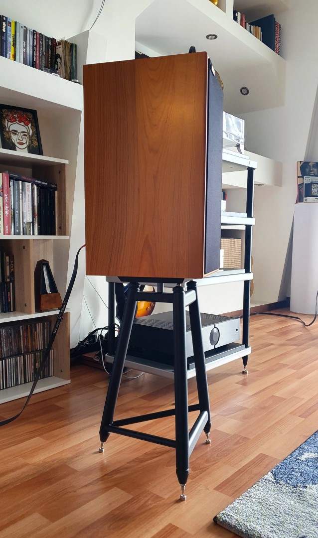 Non potevo farmi scappare la citazione dei “tripodi” da La guerra dei Mondi e poi devo dire che l’effetto estetico sotto i miei diffusori, per la precisione una coppia di Harbeth C7ES3, è davvero singolare, a volte mi sembra che debbano prendere vita e mettersi a camminare per il salotto.