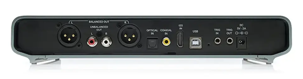 Caratteristiche principali: ingressi USB fino a 768/32 e DSD512, ottico/coassiale fino a 192/24, I2S fino a 768/32 e DSD512, uscite XLR/RCA 4 V / 2 V, alimentazione 5 V / 2 A.