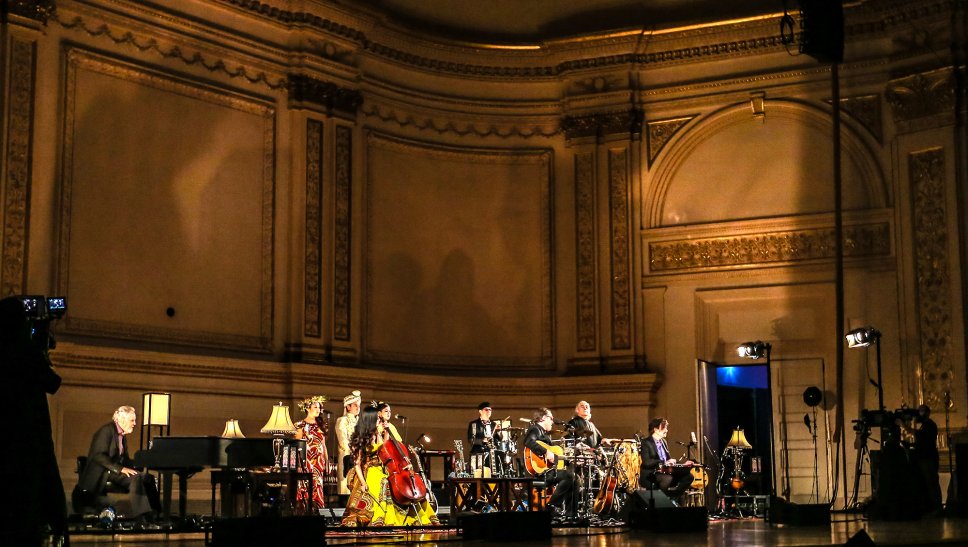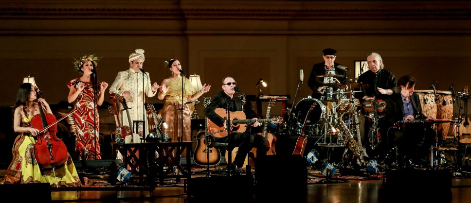Dietro di lui una super-band con la violoncellista cinese Tina Guo, anche al violino tradizionale del suo paese, Hossam Ramzy, percussionista egiziano già visto a suo tempo nel tour acustico di Page & Plant, l’ex-Double Trouble Reese Wynans al piano, l’esperto Anton Fig alla batteria, il polistrumentista Eric Bazilian al mandolino, ghironda, sax, chitarra acustica e un trio di variopinti vocalist australiani.
