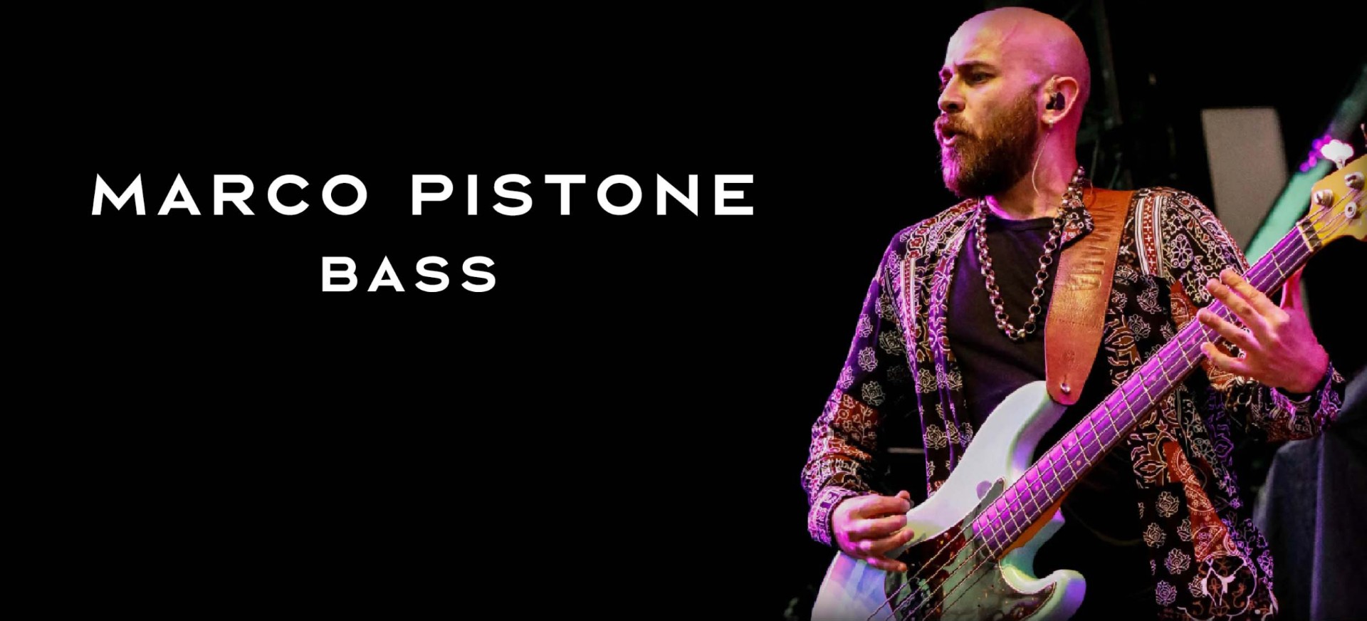 Marco Pistone al basso completa la sezione ritmica con un profilo accademico e professionale raramente riscontrabile insieme: laureato con 110 e lode in Discipline Musicali Jazz presso il Conservatorio Respighi di Latina, vincitore del Best Bassist Award alla finale internazionale del Taubertal Festival in Germania nel 2017. In studio ha lavorato con Ron, apparendo nell’album Sono Un Figlio, e ha ricoperto il ruolo di bassista principale nel progetto Queen at the Opera, con esibizioni al Teatro Arcimboldi e al Teatro della Conciliazione.