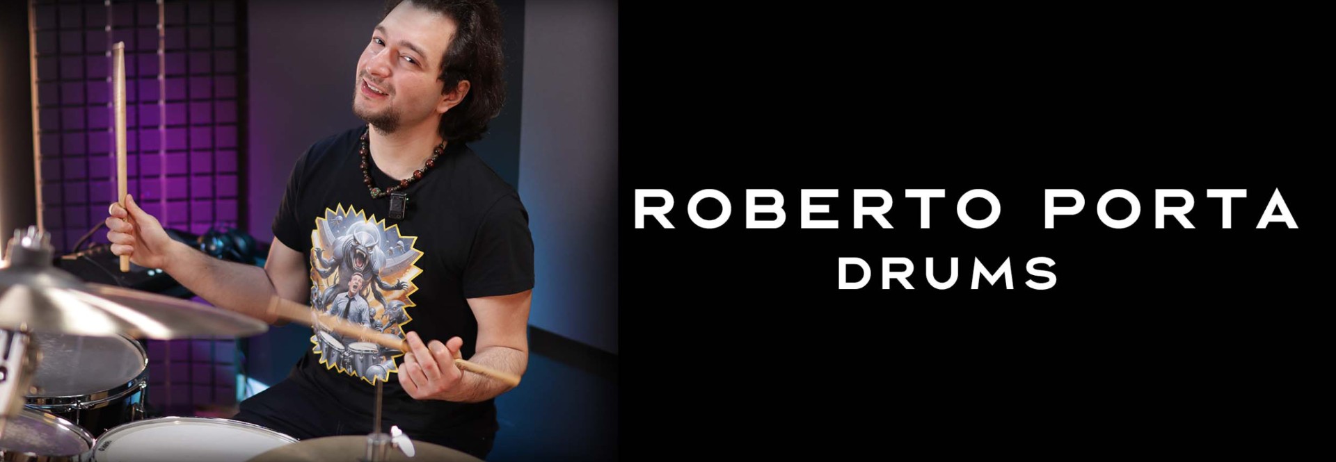 Roberto Porta alla batteria è, senza mezzi termini, uno dei batteristi italiani più completi della sua generazione. Nel 2023 ha vinto il Drum Channel / Roland Global Playalong Contest, con una giuria composta da Terry Bozzio, Chad Wackerman, Gregg Bissonette e Thomas Lang, ovvero quattro tra i batteristi più influenti della storia del rock e della fusion. Nello stesso anno è stato chiamato a suonare a sorpresa con Jason Derulo davanti a oltre 100.000 persone in Romania. Nel 2025 è stato il batterista ufficiale del tour estivo italiano di Paul Gilbert. Non male come biglietto da visita.