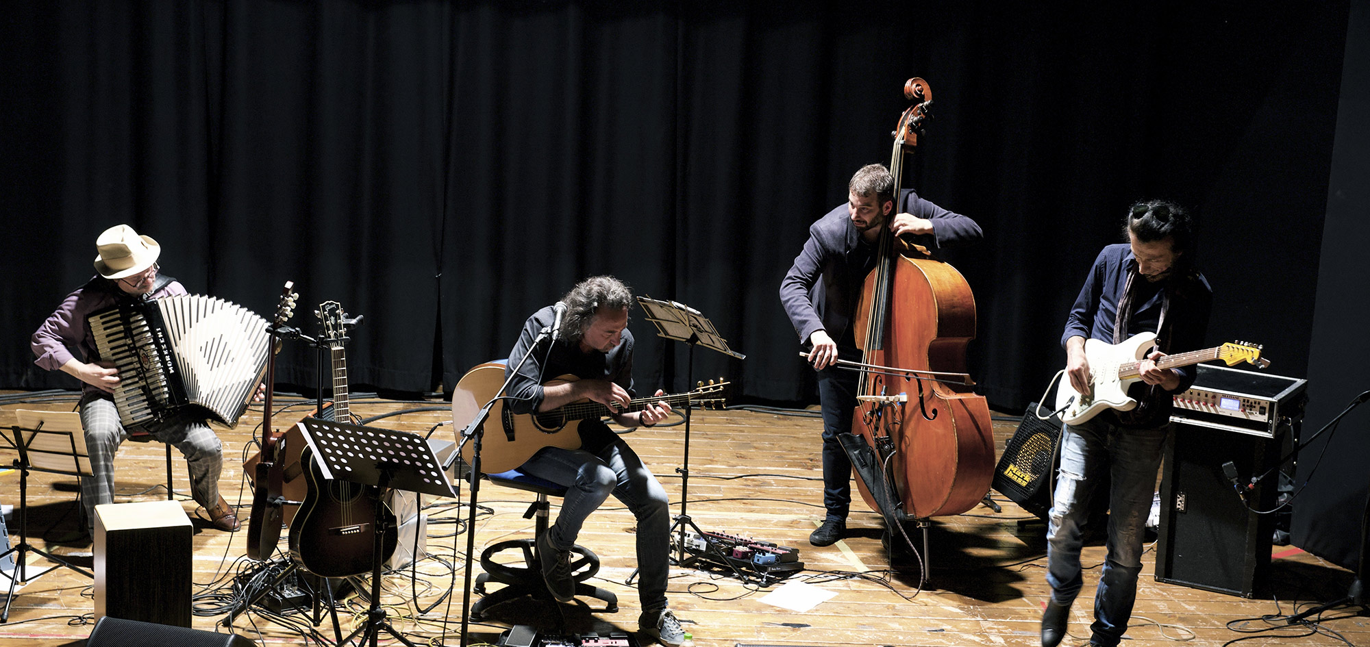 Ci sono anche interventi della Gretsch Electromatic per alcuni colori ‘elettrici’, della Godin ACS Nylon e del bouzouki Musikalia.