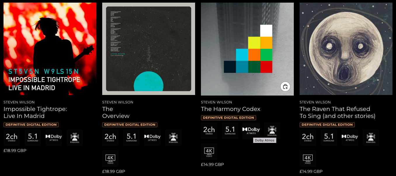 Oltre al live, Wilson ha remixato in Dolby Atmos per la prima volta due dei suoi album più amati: The Raven That Refused to Sing (2013) e Hand.Cannot.Erase. (2015). Il primo è già disponibile sulla piattaforma, mentre il secondo sarà rilasciato a breve.