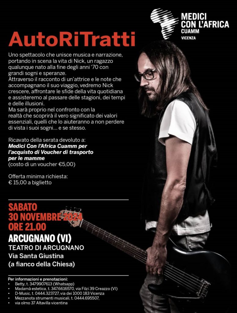 Sabato 30 novembre alle ore 21.00, il Teatro di Arcugnano (VI) ospiterà un evento speciale: il concerto benefico di Alessandro Peretto, che porterà in scena lo spettacolo AutoRiTratti, un racconto musicale e teatrale che intreccia sogni, speranze e sfide quotidiane.