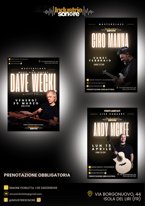 Industrie Sonore, il centro musicale diretto dal chitarrista Simone Fiorletta, apre il 2026 con un calendario che punta dritto al cuore dei musicisti: tre appuntamenti tra formazione avanzata e musica suonata dal vivo, con ospiti di profilo internazionale.