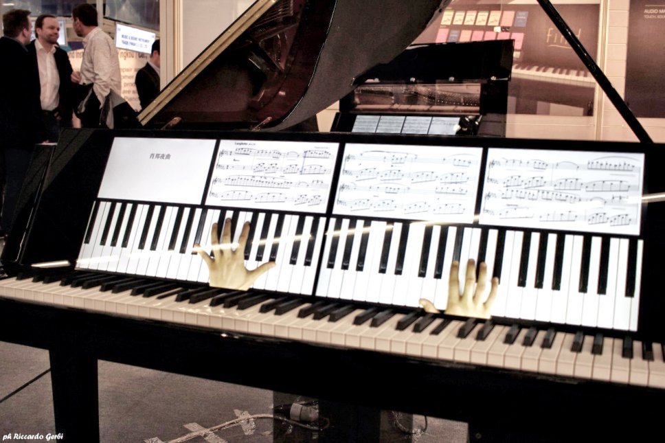 Per chi si è lamentato riguardo alla massiccia presenza di brand cinesi rispondo: meno male che anche loro ci sono! Alcune delle intuizioni più interessanti colte all’ultimo Musikmesse dal sottoscritto sono giunte proprio da questi espositori, e un esempio in tal senso sono i pianoforti realizzati dal brand EPiano, dotati di ampi display al posto del leggio dove visualizzare non solo lo spartito, ma anche la diteggiatura, la posizione delle mani o video e immagini a titolo promozionale.