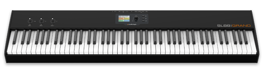 Le altre caratteristiche sono comuni a entrambi i modelli: la SL88 Studio dispone tra i controlli di un terzetto di Y/X Stick Controller, più quattro potenziometri rotativi e uno switch posti accanto al display da 320 x 240 pixel. Il parco connessioni comprende l’interfaccia USB, una porta MIDI In e due porte MIDI Out parallele, e ben quattro prese per collegare dei pedali (2 switch, uno di espressione e uno assegnabile). Anche lo chassis della SL88 Studio nella parte posteriore include i punti di ancoraggio per fissare sopra lo strumento accessori quali una mensola e il leggio.