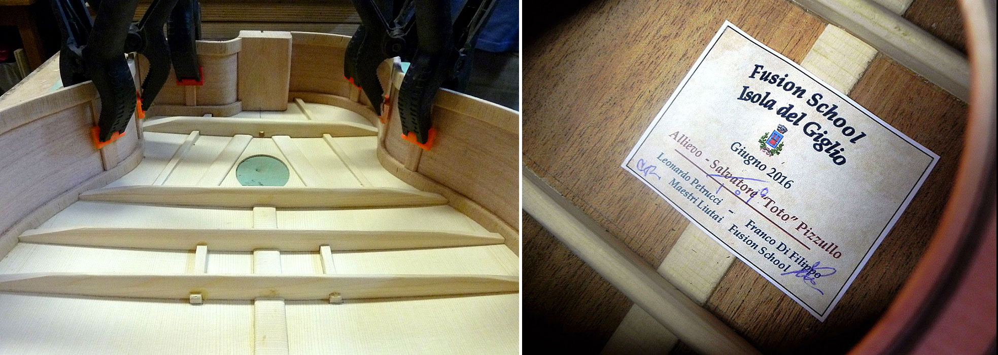 Petrucci: nei primi anni al Giglio abbiamo portato sempre una chitarra in più che costruivamo noi assieme agli studenti in modo che avessero davanti un modello della costruzione. Era possibile quando si costruivano quasi solo elettriche, ora invece c’è sempre una varietà di strumenti.