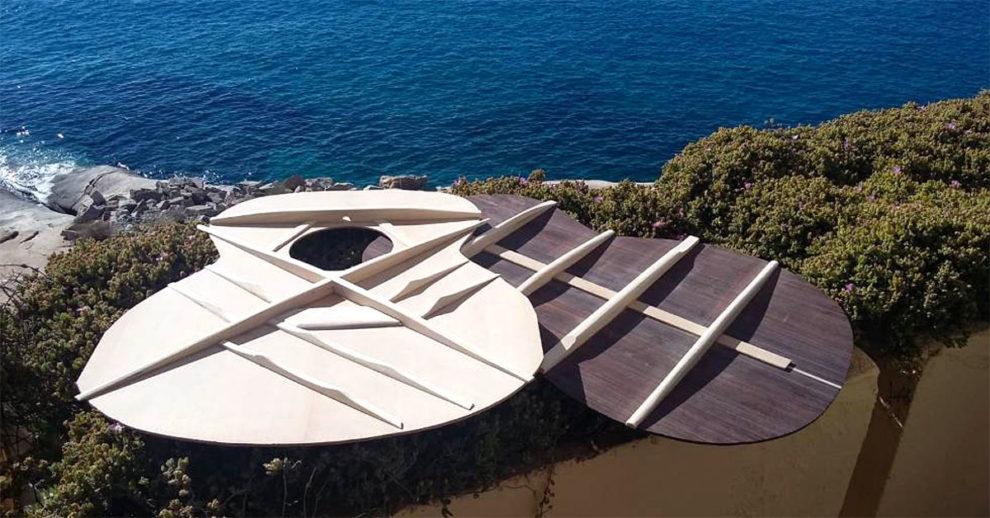L’immagine scelta come simbolo è significativa: una paletta di chitarra che spunta dal mare al posto del faraglione della baia di Campese. La tentazione è forte, quella di immergersi per qualche giorno non solo in quell’acqua cristallina ma nel lavoro appassionante di chi prova ogni volta a dar vita a una struttura in legno che si trasforma in una vera e propria scatola magica.