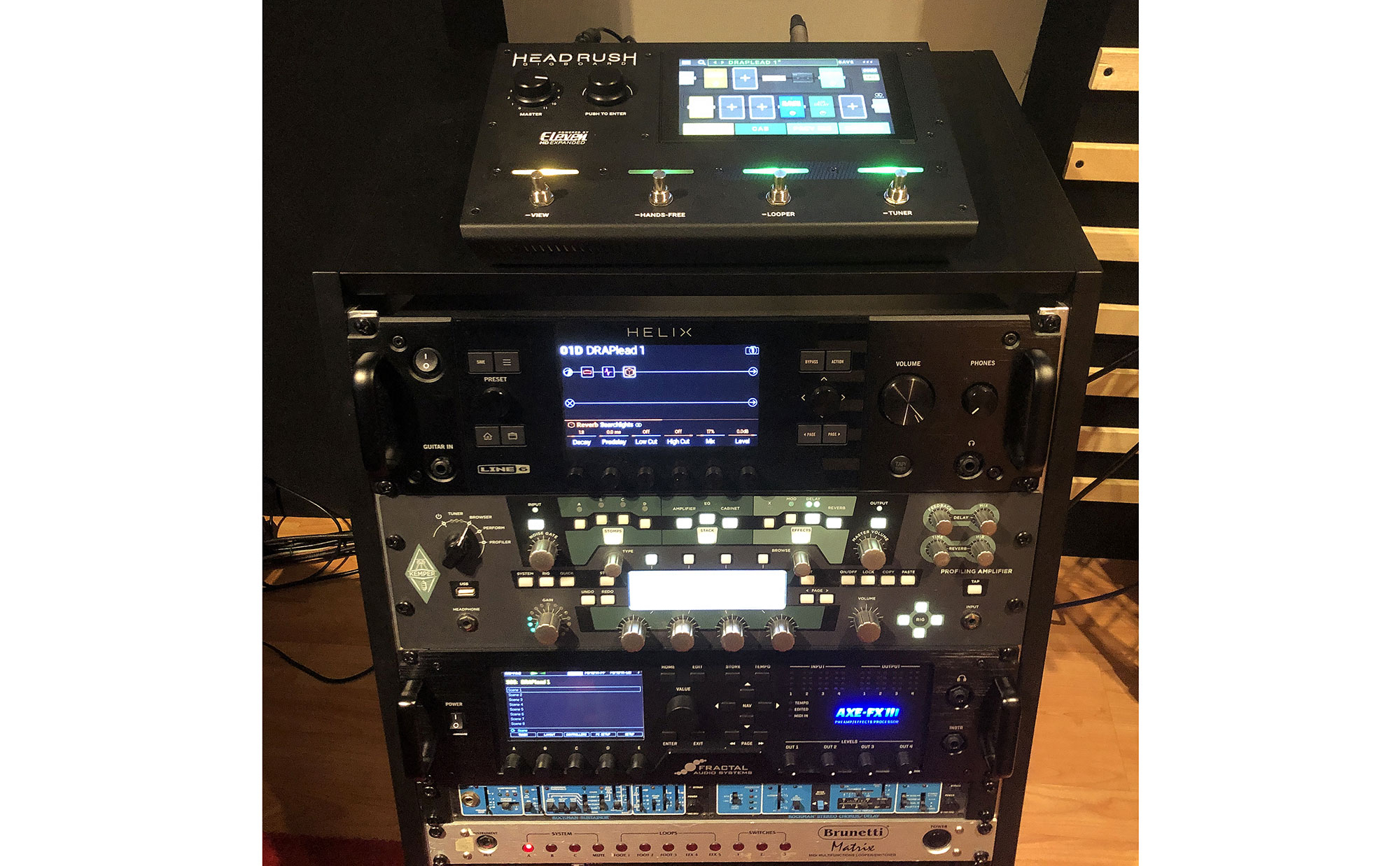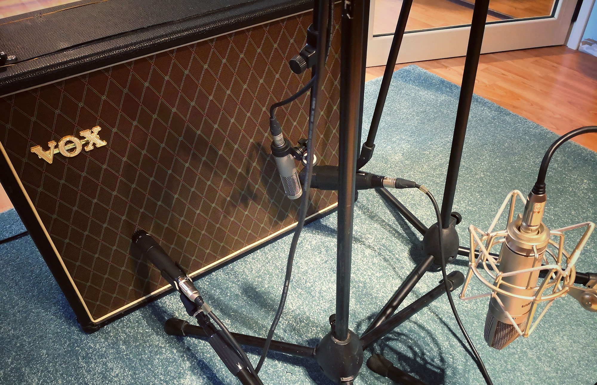 Entrare nella sala di ripresa è trovarsi tra due fuochi: il fatidico muro di amplificatori da un lato e una marea dei più ricercati pedali dall’altro. Non mancano alcune chitarre di tutto rispetto.
