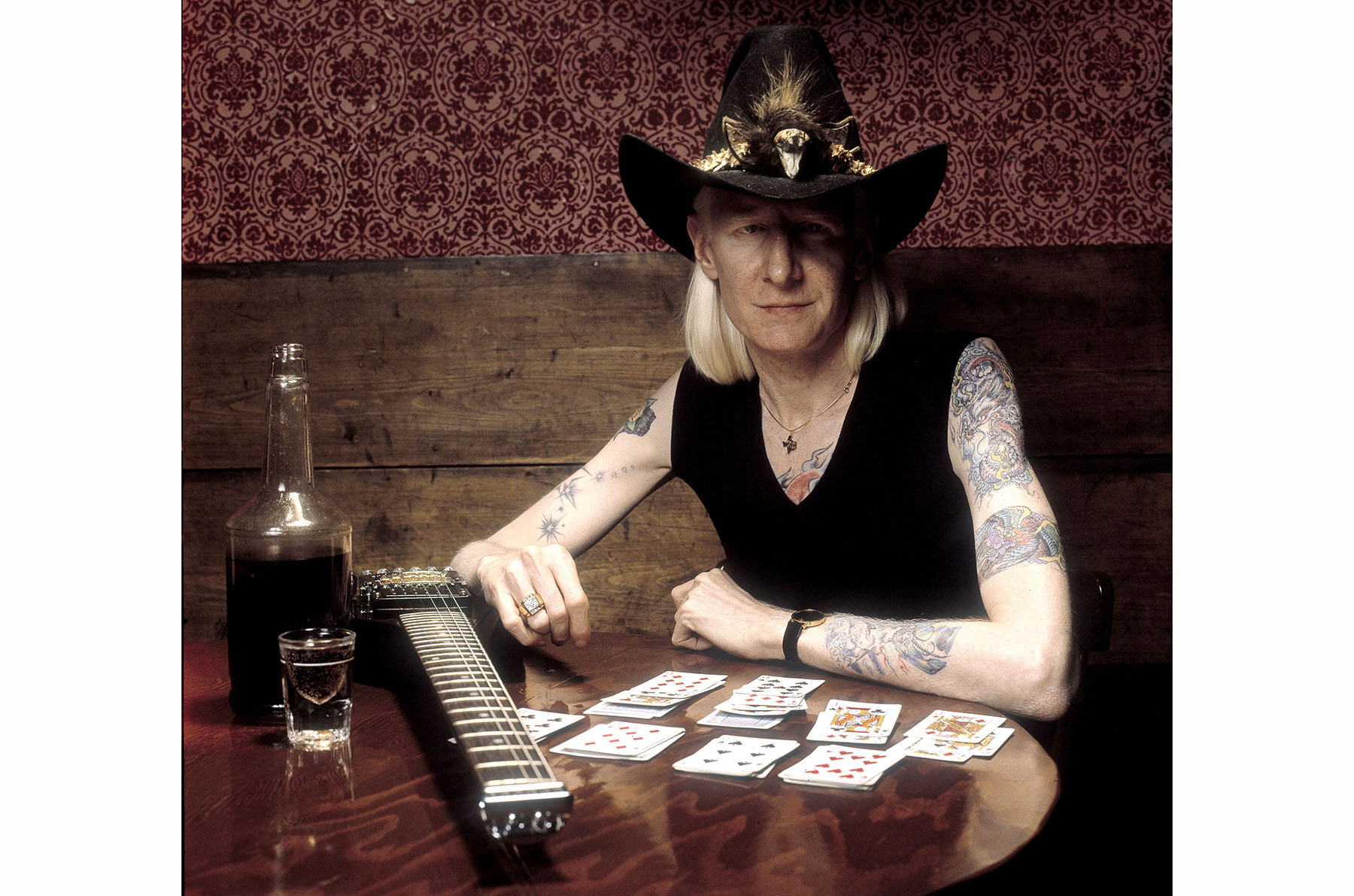 Quando Winter appare sul palco di Pistoia Blues, nella storica piazza della cittadina toscana, sembra una vera apparizione, con il torso nudo che mette in mostra gli ampi tatuaggi e due grossi ventilatori sparati direttamente sulle magre spalle. È minuto, esile, con il candore della pelle che va di pari passo con quello dei lunghi capelli albini sotto l’ampio cappello texano.