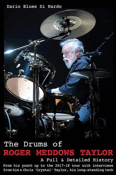 The Drums of Roger Meddows Taylor racconta in modo dettagliato e preciso la storia delle batterie utilizzate dal drummer della Cornovaglia, da quelle degli esordi negli anni ’60 allo strumento (considerato nel suo complesso, completo cioè di piatti e dotazione hardware) suonato nell’ultimo tour, iniziato nel 2017.