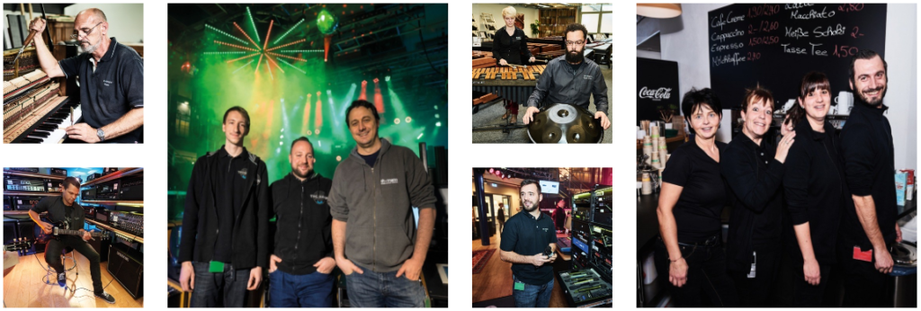 A questi si unisce un altrettanto grande numero di persone che lavora in ogni settore di quest’enorme azienda, leader in Europa nella vendita di strumenti musicali al dettaglio, per arrivare a un numero di circa 1500 lavoratori.