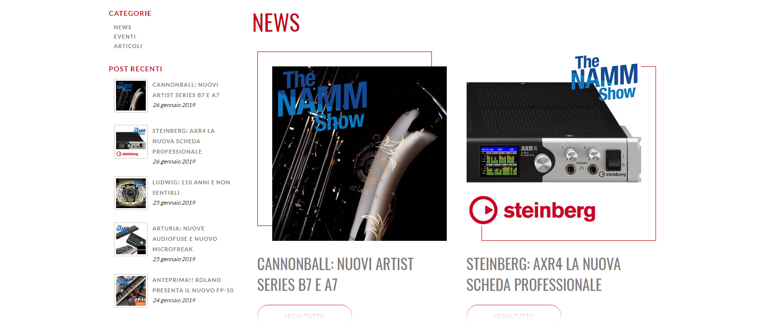 Ovviamente un posto d’onore merita anche l’area video, sempre in home page scrollando in basso, peraltro in queste settimane impreziosita – concedetecelo – proprio dai nostri video che ogni giovedì stanno uscendo sia per l’uno che per l’altro negozio, nei quali vi mostriamo sia le aree adibite a esposizione e prova, sia singoli strumenti o serie, spesso da far luccicare gli occhi.
