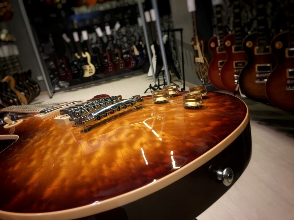 In cima a questo mondo, superando la fornitissima e travolgente esposizione di strumenti “standard”, vi è il nuovissimo corner inaugurato proprio ultimamente, in cui si trovano i più prestigiosi esemplari Gibson Custom Shop più alcune serie Fender sempre del CS (senza farsi mancare qualche Masterbuilt) e una bellissima parete di PRS di cui varie Private Stock.